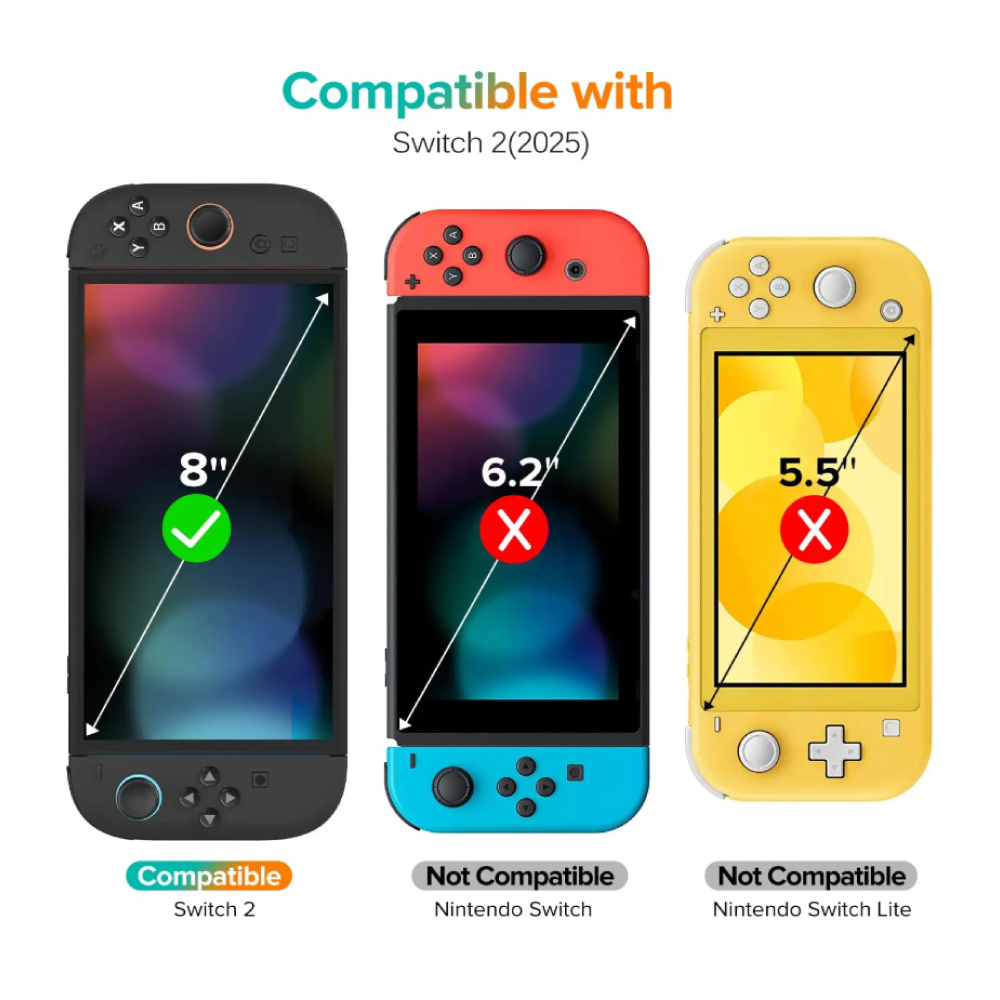 Schützen Sie den Bildschirm Ihres Nintendo Switch 2 mit diesem hochwertigen 3er-Pack Displayschutzfolien aus gehärtetem Glas . Speziell für den neuen 8-Zoll-Bildschirm von Rand zu Rand entwickelt, passt es perfekt bis in die Ecken – für einen nahtlosen und sicheren Sitz.