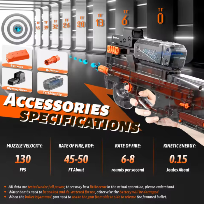 | Paket beinhaltet: | 1x P90 Elektro-Gelblaster mit Zubehör 1x USB-Ladegerät |
