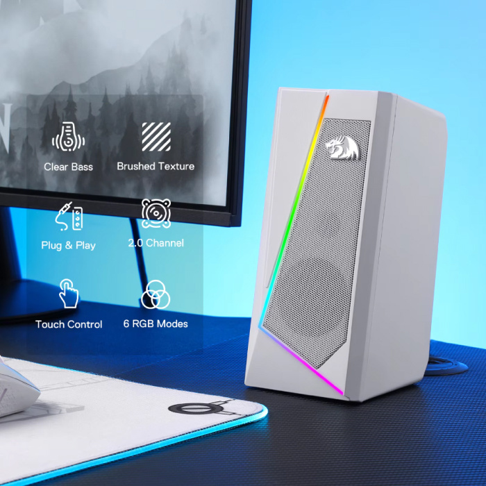 Bringen Sie Ihr Hörerlebnis mit dem Redragon GS520 ANVIL auf die nächste Stufe. Diese Desktop-Lautsprecher vereinen kraftvollen Sound, elegantes Design und stilvolle RGB-Beleuchtung und eignen sich perfekt für jeden modernen Schreibtisch.