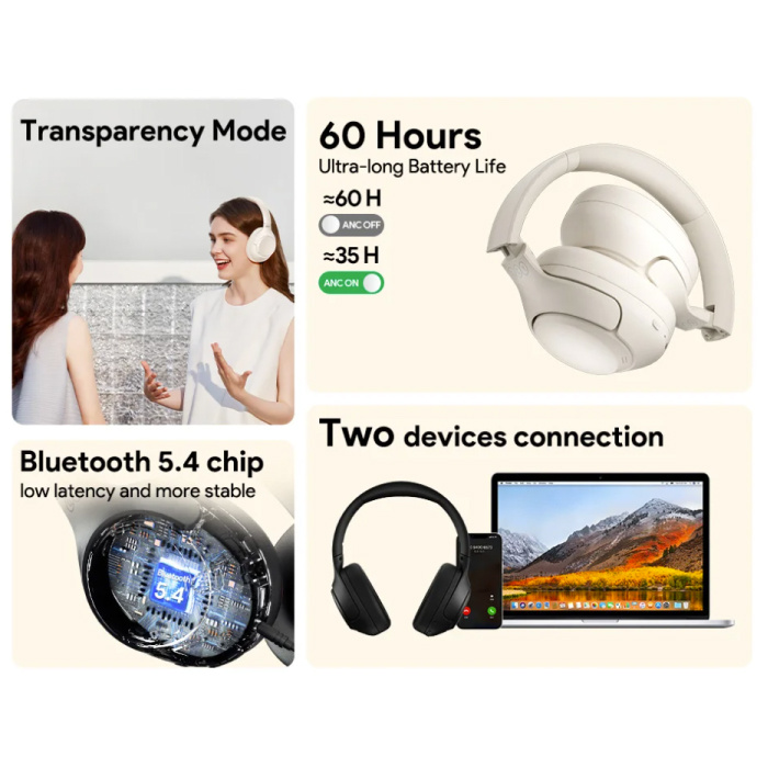 Der QCY H3 bietet eine bemerkenswerte Akkulaufzeit von bis zu 60 Stunden bei ausgeschaltetem ANC und 35 Stunden bei eingeschaltetem ANC. So können Sie Ihre Lieblingsmusik stundenlang ohne Unterbrechungen genießen.