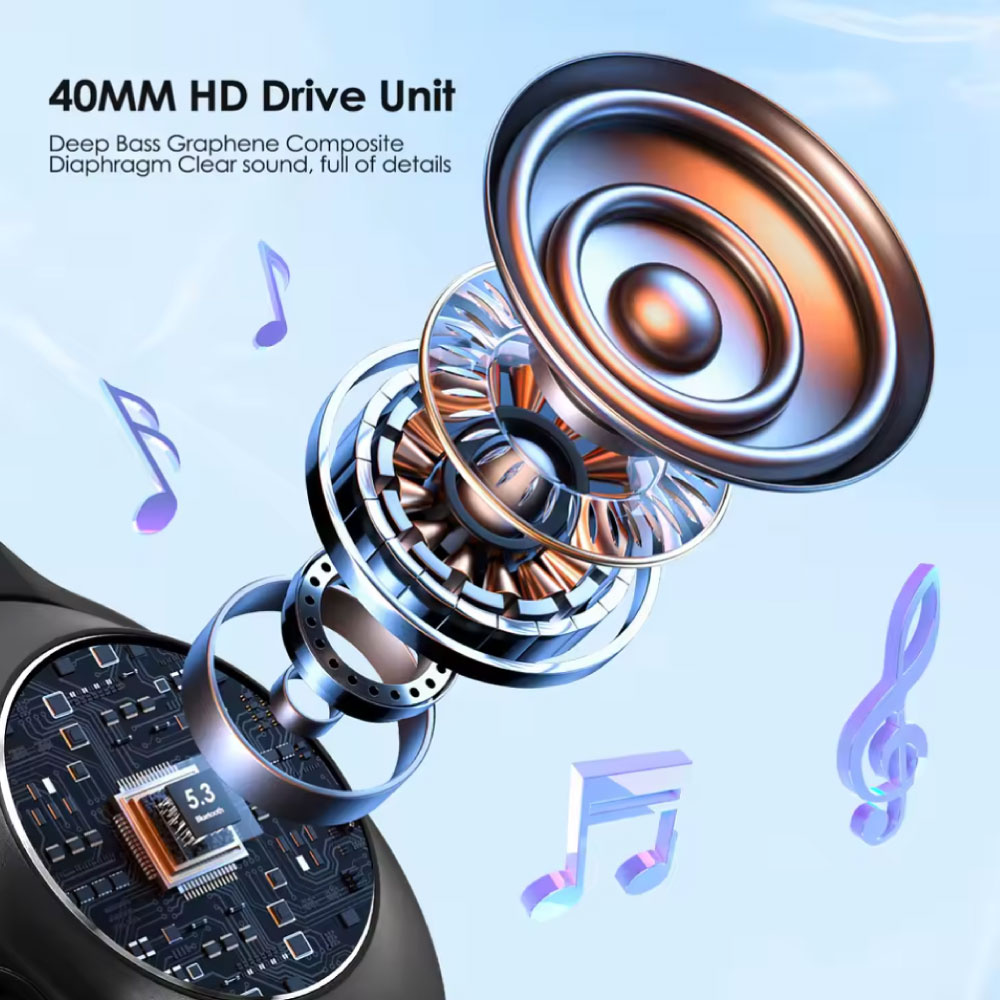 Die leistungsstarken 40-mm-Treiber liefern klaren Hi-Fi-Stereoklang mit tiefen Bässen und brillanten Höhen. Ob Musik hören, Filme schauen oder telefonieren – Sie genießen stets ein sattes und ausgewogenes Klangerlebnis. Dank des integrierten Mikrofons mit Geräuschunterdrückung sind auch klare Freisprechanrufe möglich.