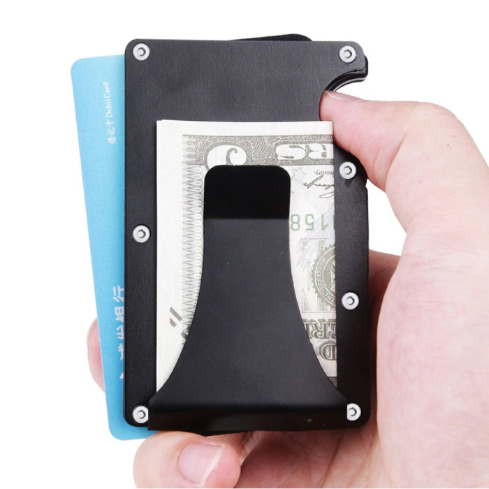 Das robuste Aluminiumgehäuse schützt Ihre Karten vor Beschädigung und Verschleiß. Auf der Rückseite befindet sich ein praktischer Clip für Ihr Geld. Die Kartenbrieftasche ist einfach zu bedienen und die Karten bleiben an Ort und Stelle.