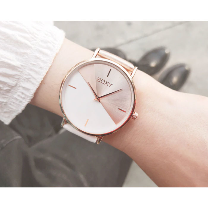 Weiblichkeit, Eleganz und Minimalismus strahlen die Luxusuhr aus. Die Designer von SOXY bemühen sich, spezielle Uhren für Frauen herzustellen.