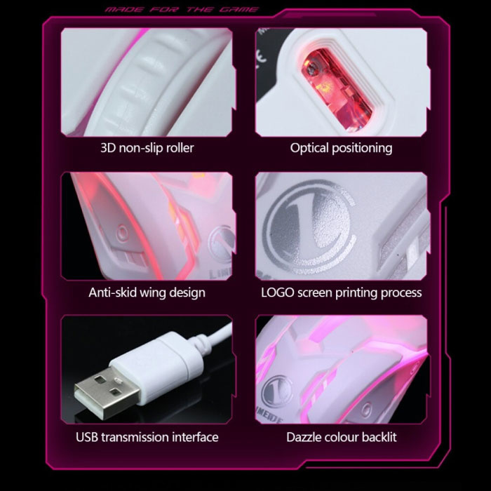 Die optische Gaming-Maus liegt bequem in der Hand und verfügt über strukturierte Seitengriffe und eine weiche Oberfläche für das ultimative Look-and-Feel. Die Maus hat eine schöne RGB-Beleuchtung mit einem sehr technologischen Design für diesen schönen Sci-Fi-Effekt.