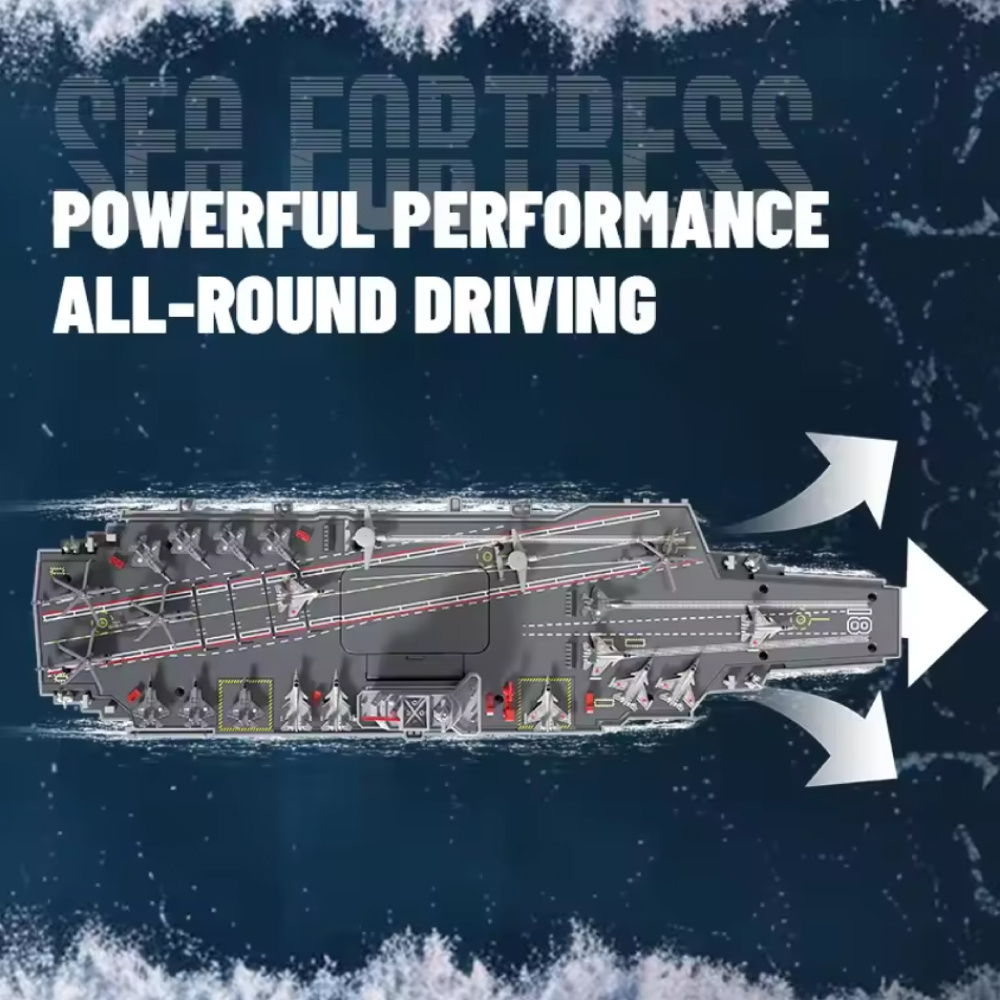 Mit der 2,4-GHz-Fernsteuerung lässt sich das Schiff problemlos in verschiedene Richtungen steuern, auch um Hindernisse herum. Die Steuerung ist einfach und reaktionsschnell und eignet sich sowohl für Anfänger als auch für erfahrene Benutzer. Dank seiner Doppelmotoren erreicht der Flugzeugträger eine Höchstgeschwindigkeit von beeindruckenden 20 km/h – bereit für rasante Seemissionen!