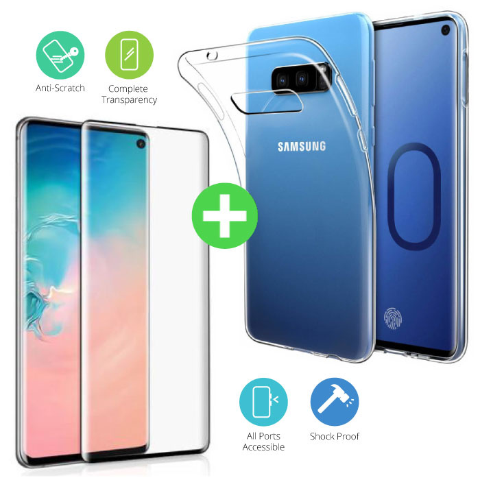 Samsung Galaxy S10e Transparentes TPU-Gehäuse + Displayschutzfolie aus gehärtetem Glas