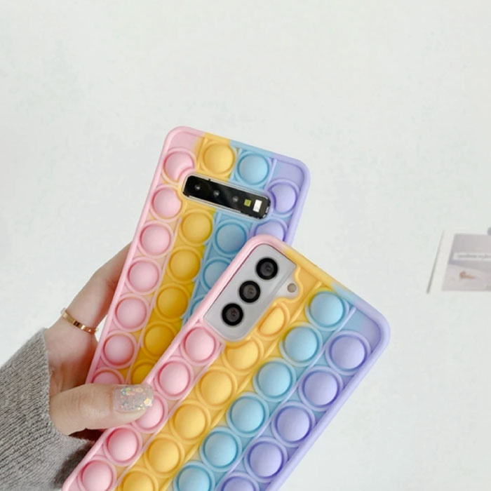 Samsung Galaxy S21 Pop It Hülle - Silikon Bubble Toy Case Anti Stress Cover Rainbow