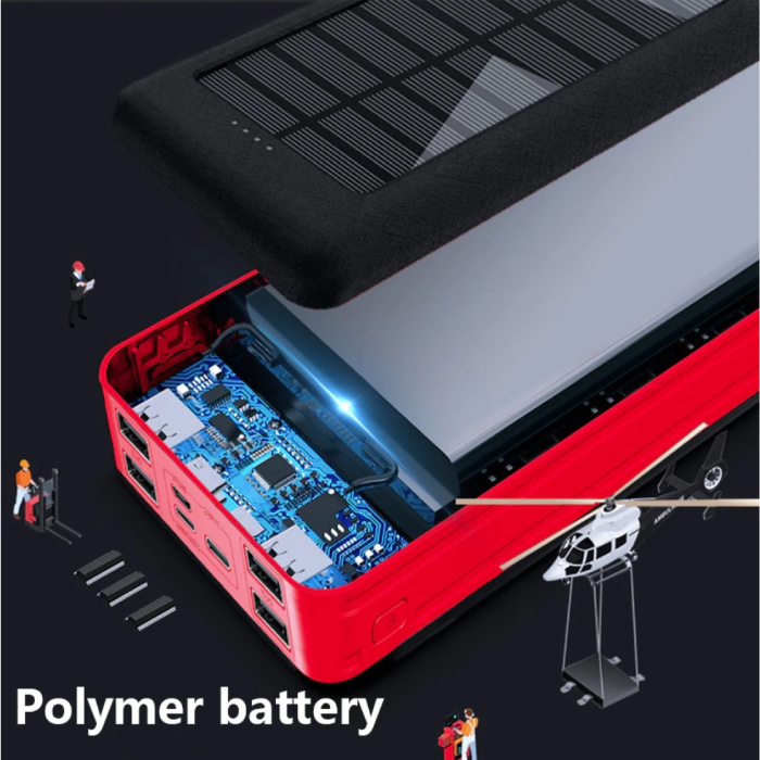 Solar Power Bank mit 4 Ausgängen / 3 Eingängen 80.000mAh - Eingebaute Taschenlampe - Externes Notfall-Akku Ladegerät Ladegerät Sun Black