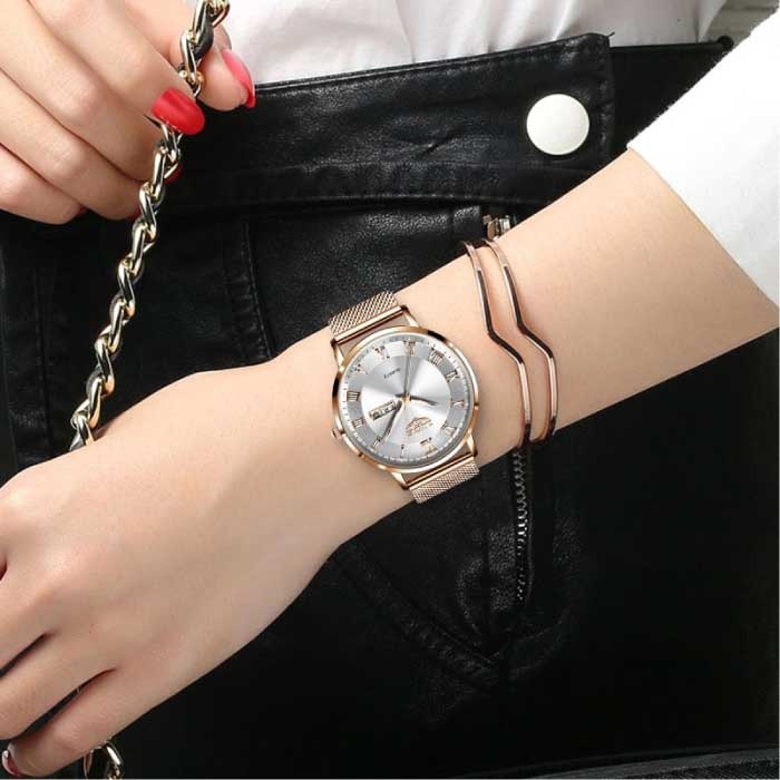 Diese Luxusuhr von Lige ist mit einem Edelstahlarmband gefertigt. Sie hat ein wunderschönes glänzendes Design mit römischen Ziffern zur Anzeige der Stunden. Jedes Detail der Uhr wurde sorgfältig ausgearbeitet, damit das Design zur Geltung kommt.