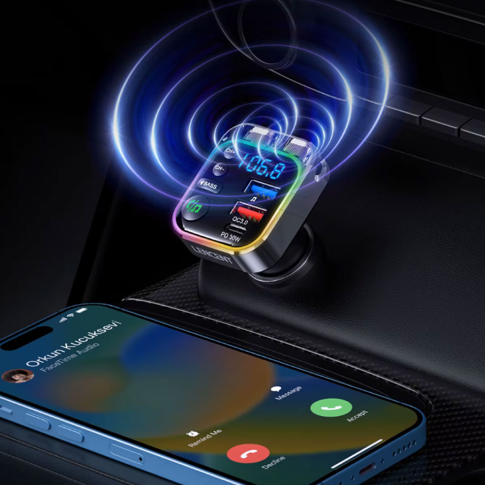 Genießen Sie auf jeder Autofahrt Komfort und Musik mit dem LENCENT Bluetooth FM-Transmitter . Dieses kompakte All-in-One-Autoladegerät vereint Freisprechfunktion , Hi-Fi-Musikstreaming und superschnelles Laden in einem eleganten Gerät.
