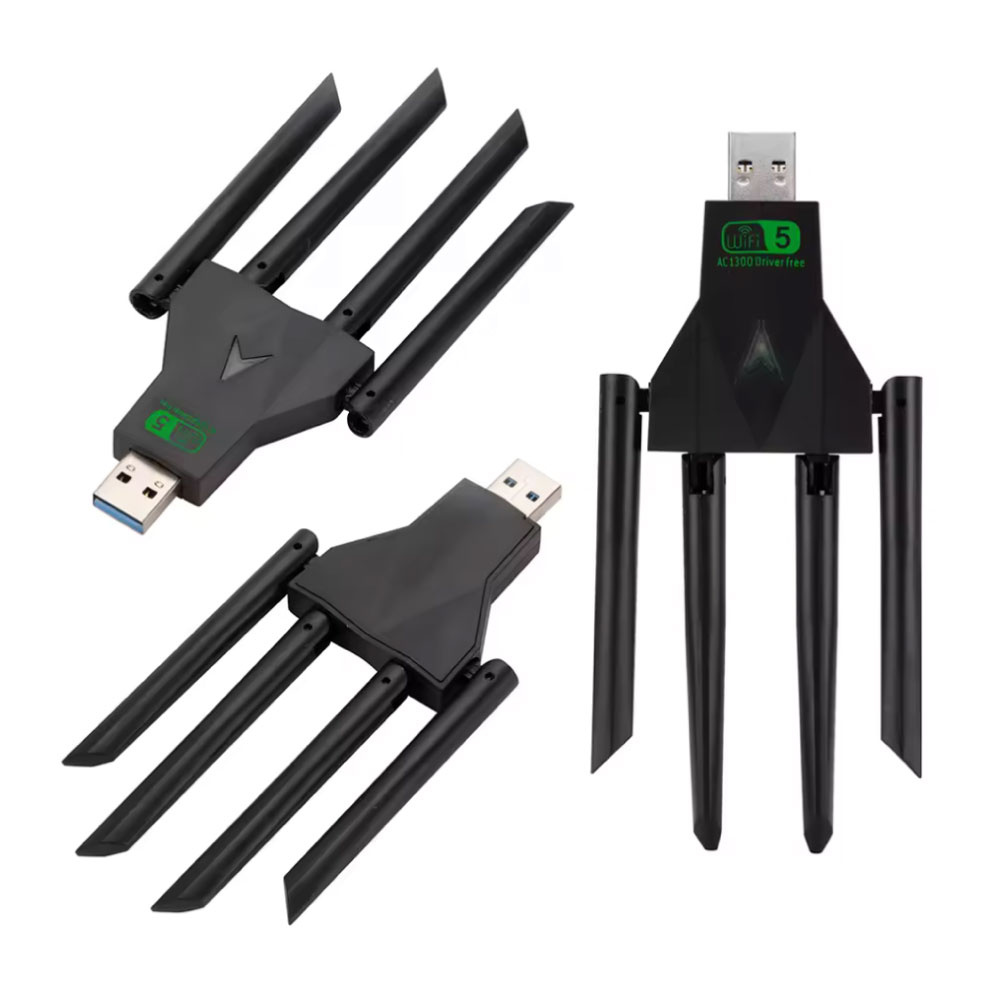 1300Mbps Wifi USB Adapter - 4 Antenna Network Dongle Wireless - Black