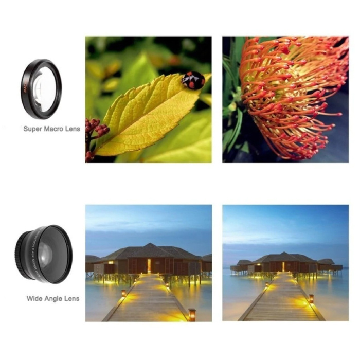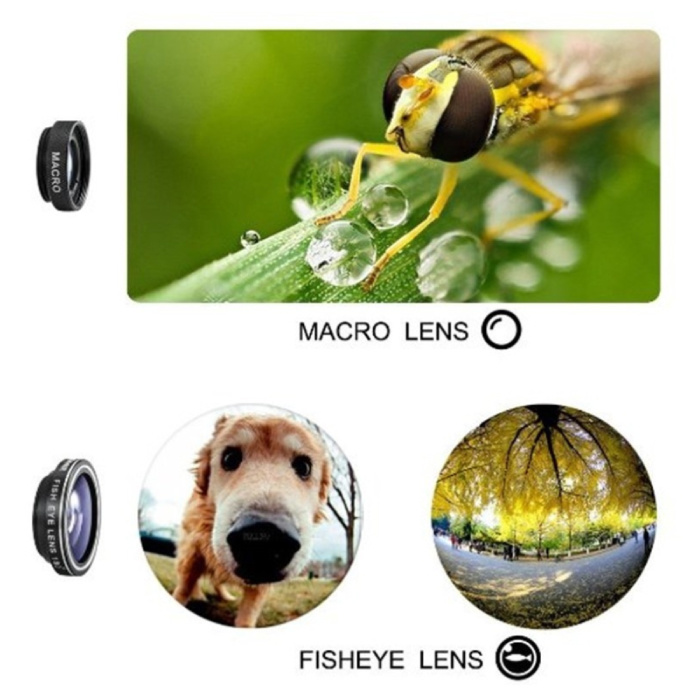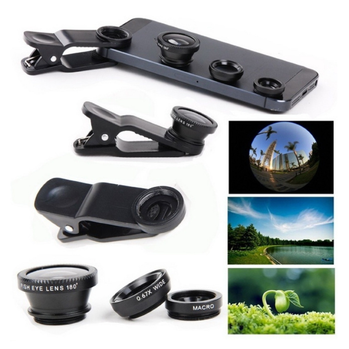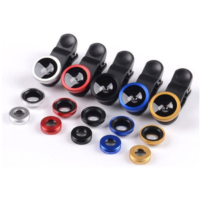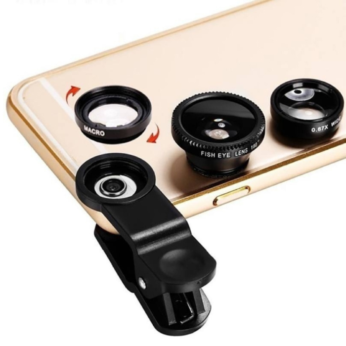 The 3 in 1 lens has a fisheye, wide angle and macro lens. By unscrewing the wide angle, the macro lens will appear. This 3-pack smartphone lens is the ideal start to improve your smartphone photos.