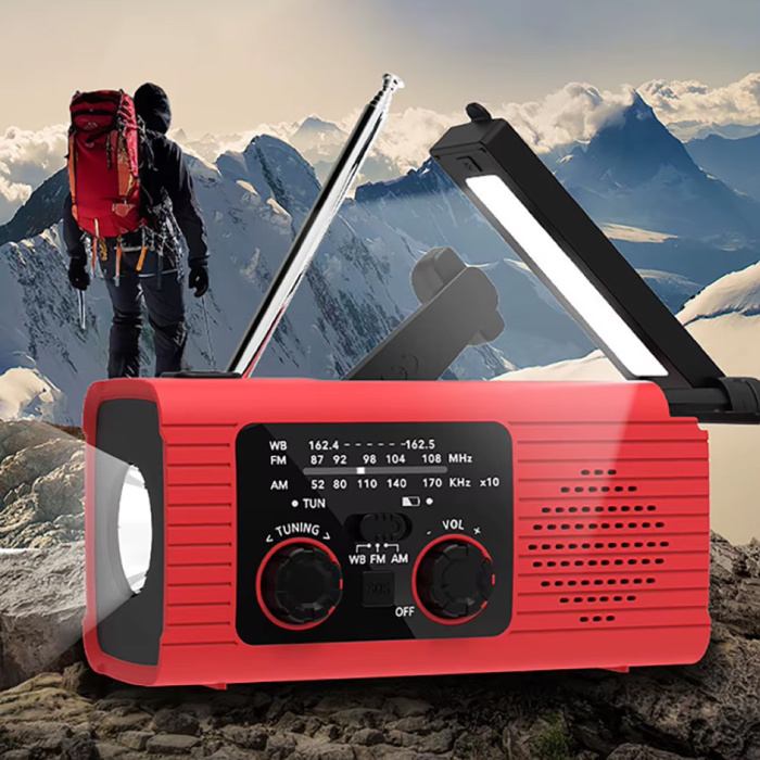4000mAh Solar Power Bank & Emergency Radio with Dynamo - Built-in Flashlight - Emergency Battery Charger - Red