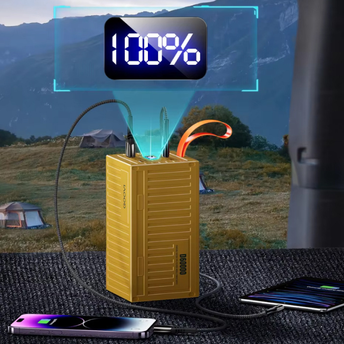 60,000mAh Power Bank with 5 Charging Ports (USB, USB-C) - LED Display & Built-in Flashlight - 22.5W Battery Charger - Yellow