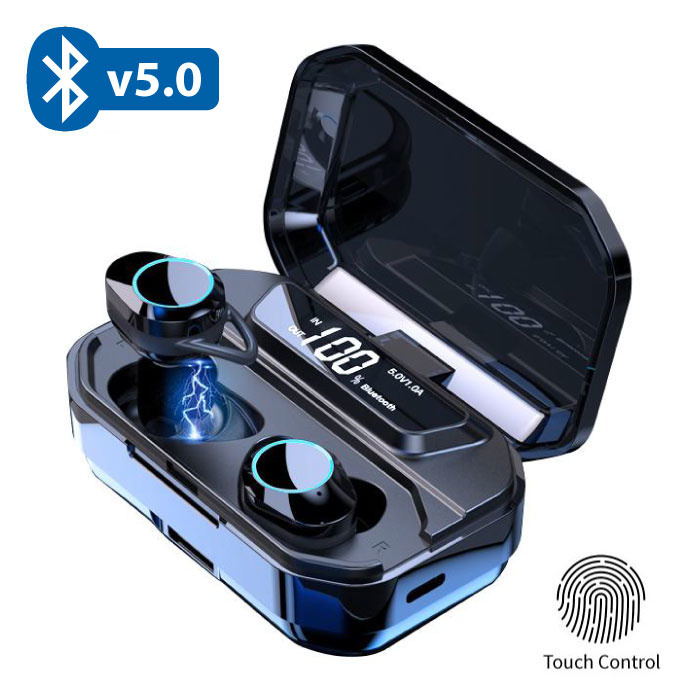 G02 TWS Wireless Smart Touch Control Earpieces Bluetooth 5.0 In-Ear Wireless Buds 3300mAh Powerbank Earphones Earbuds Black