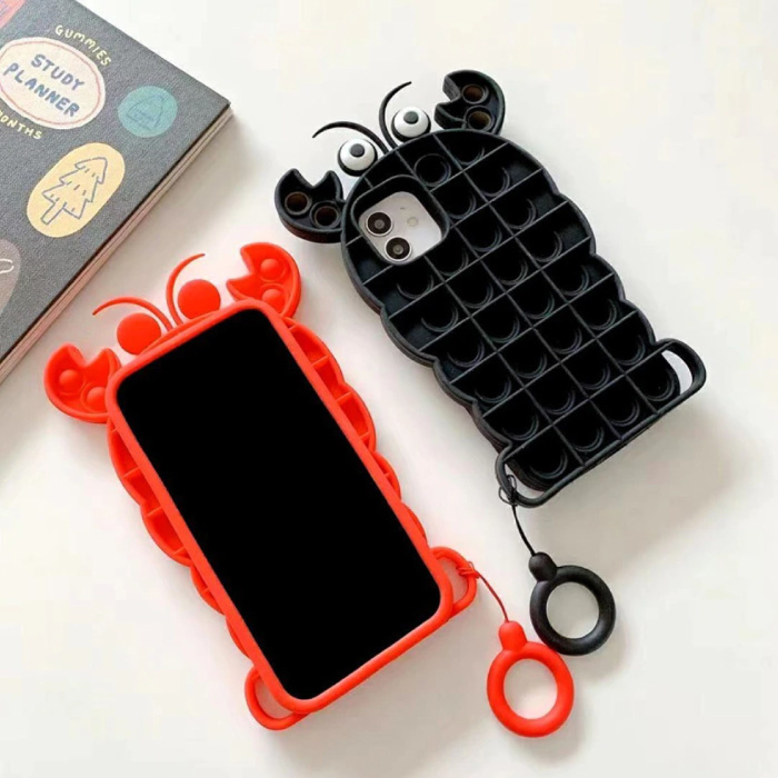 iPhone 12 Pro Max Pop It Case - Silicone Bubble Toy Case Anti Stress Cover Lobster Red