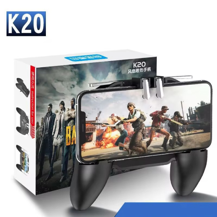 K20 Mobile Gaming Controller for PUBG - Cooling Fan - Trigger Key & Grip Gamepad - Black