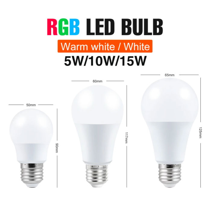 LED Bulb 15W (Warm) - RGB Lighting with IR Remote Control E27 220V Color Adjustment