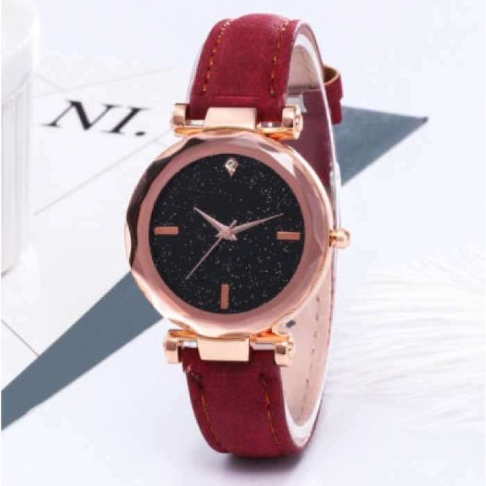 Minimalist Watch Starry Sky for Women - Fashion Casual Leather Strap Quartz Pink