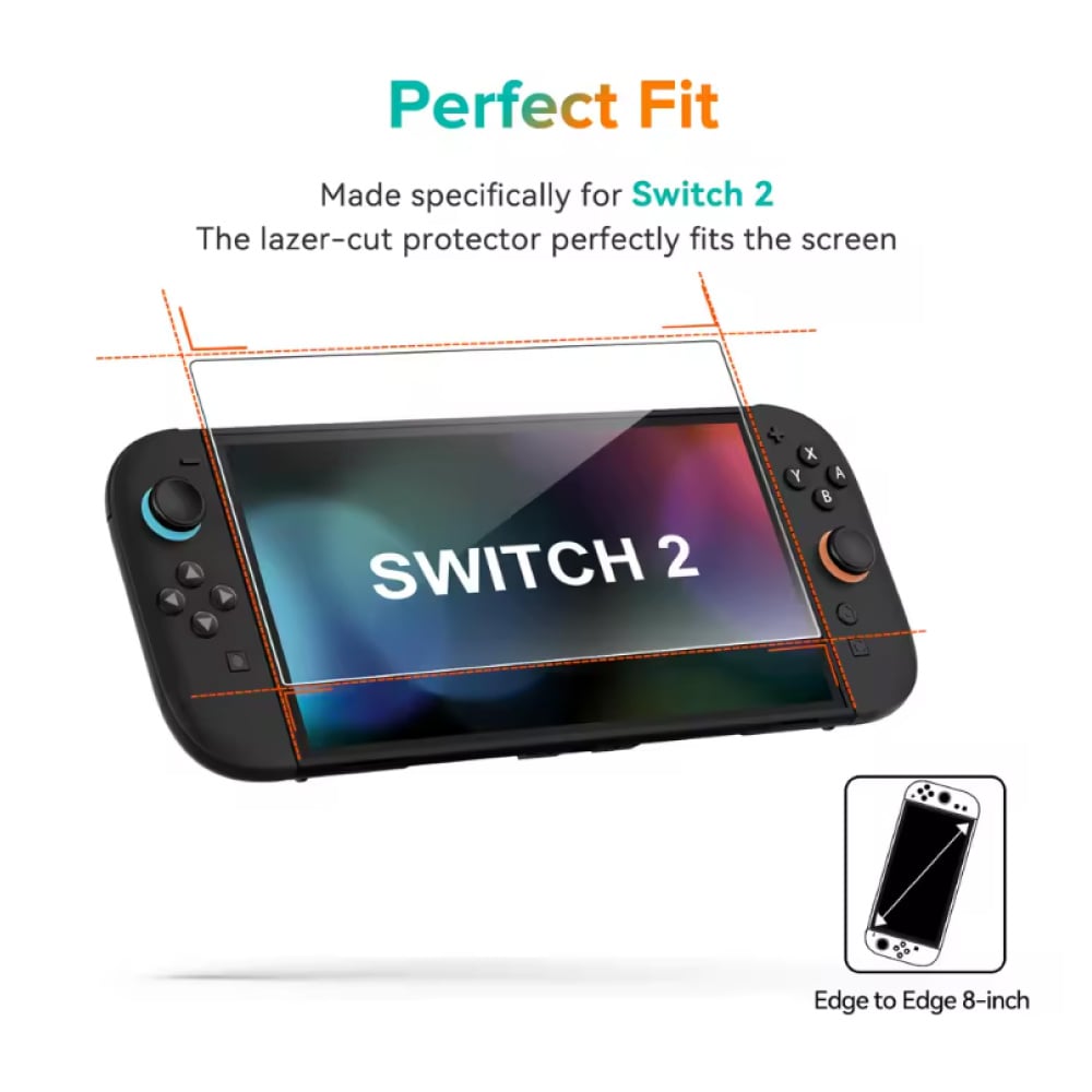 Protect your Nintendo Switch 2 screen with these high-quality tempered glass screen protectors . Specially designed for the new 8-inch edge-to-edge screen, they fit perfectly all the way to the corners – for a seamless and secure fit.