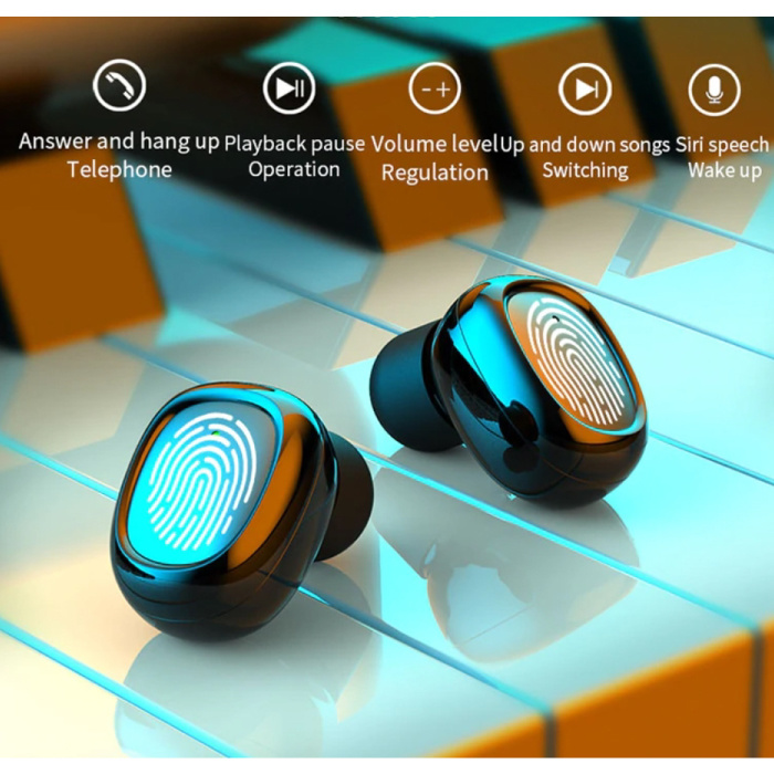 With the 3500mAh charging box you can not only charge the earphones, but you can also use them as a power bank for your smartphone. The box contains a handy battery status indicator to see how much power is left on it.