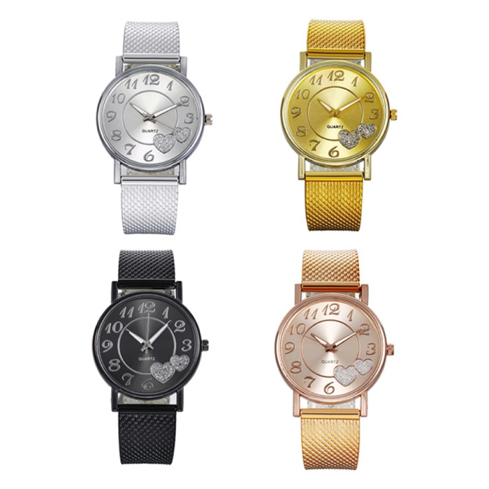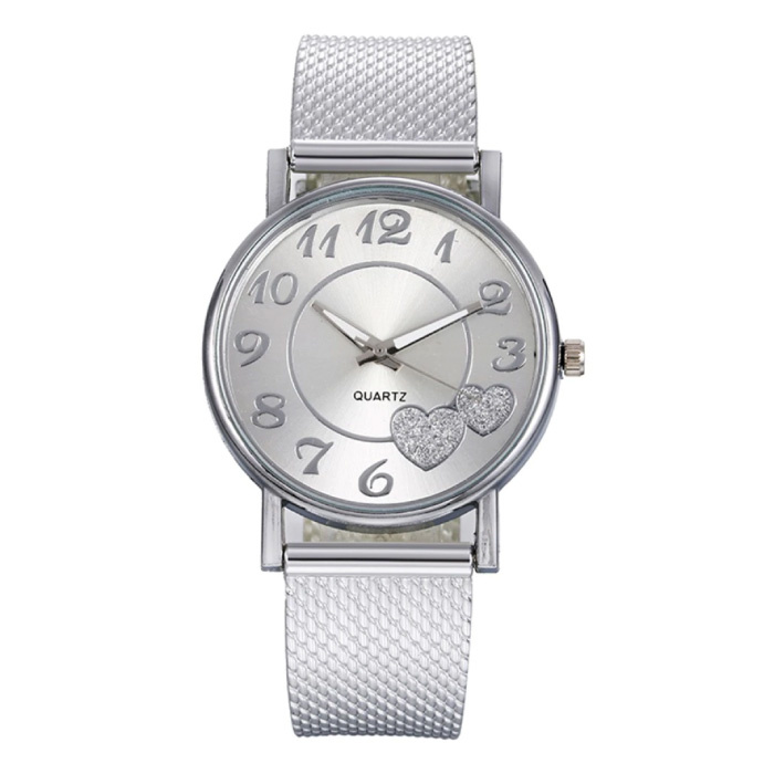 Watch with Hearts for Women - Quartz Luxury Anologue Movement Stainless Steel Mesh for Women Silver
