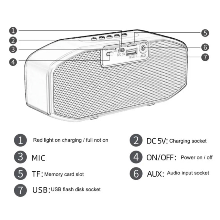 | Package includes: | 1x Wireless Speaker 1x Charging cable 1x Manual |