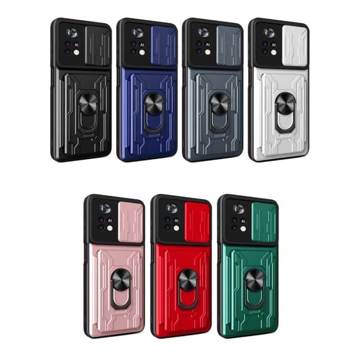 Xiaomi 12T Pro - Card Slot Case with Kickstand and Camera Slide - Pop Grip Cover - Red