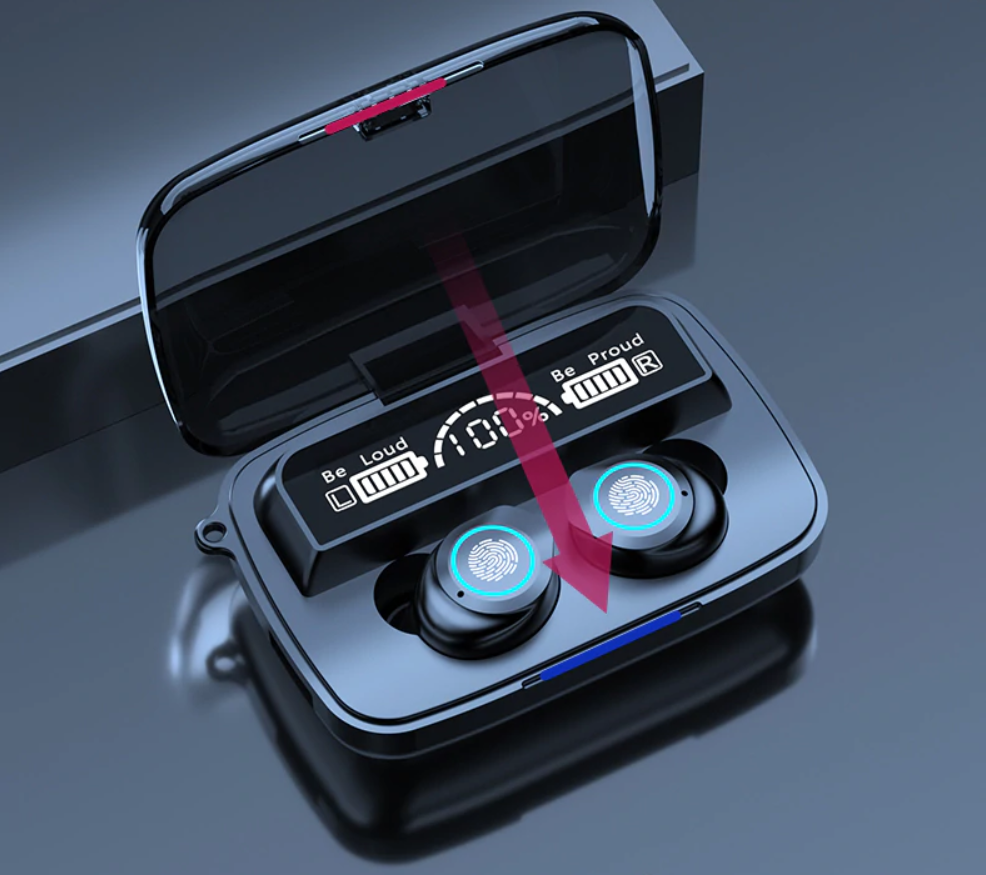 Con la caja de carga de 4000 mAh , no solo puede cargar los auriculares, sino que también puede usarlos como banco de energía para su teléfono inteligente . La caja contiene un práctico indicador de estado de la batería para ver cuánta batería queda.