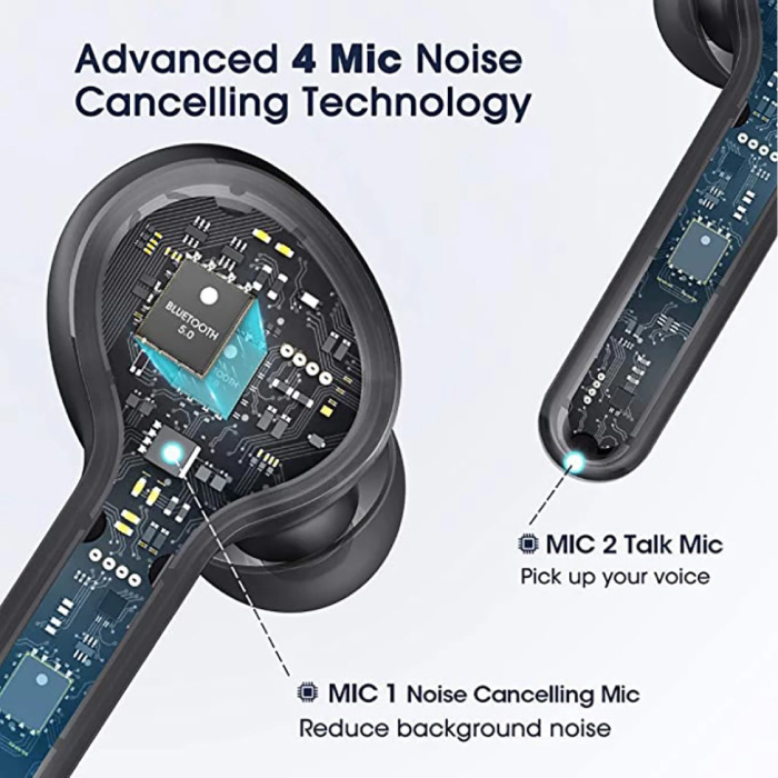 Los auriculares tienen cuatro micrófonos integrados , dos por auricular. Por ejemplo, se utilizan dos micrófonos para grabar su voz y dos micrófonos que se encargan de la cancelación de ruido. De esta forma puedes tener conversaciones muy claras.