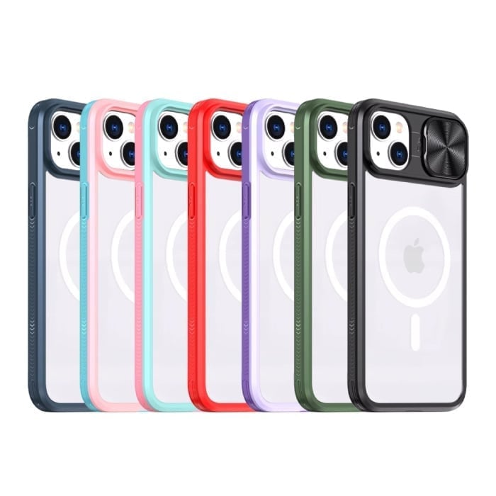 Funda de carga inalámbrica para iPhone 13 Pro - Con deslizador para cámara - Protección Magsafe - Morado