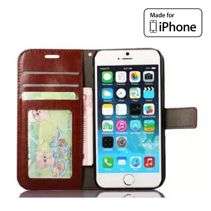 iPhone 6 - Funda de piel con tapa tipo cartera Funda Cas Funda Cartera Marrón