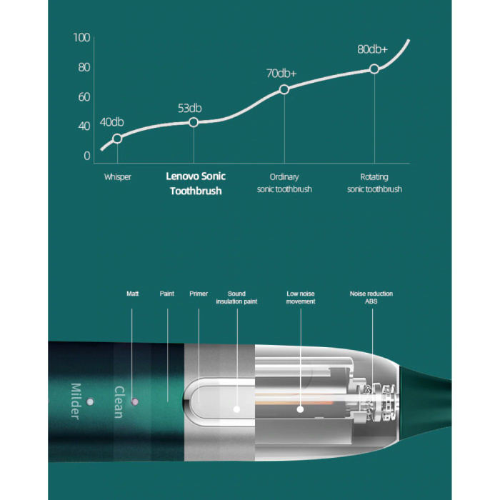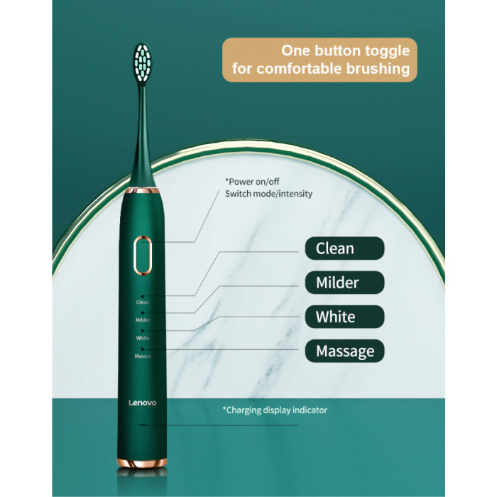 Saluda a la vida con una sonrisa hermosa y segura gracias al cepillo de dientes eléctrico Lenovo. El cabezal del cepillo de Lenovo cubre todos los dientes para tener unos dientes más limpios y encías más sanas en comparación con un cepillo de dientes manual estándar.