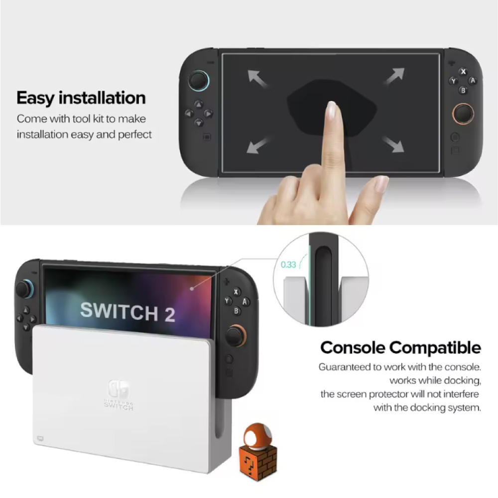 El paquete incluye: 2 protectores de pantalla para Nintendo Switch 2