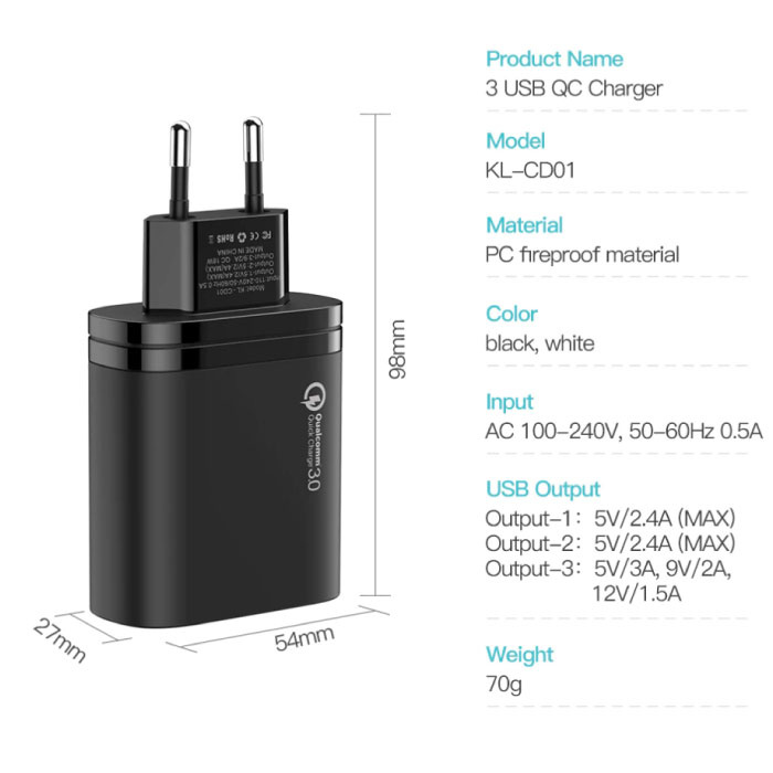 | El paquete contiene: | 1x cargador de carga rápida 3.0 |