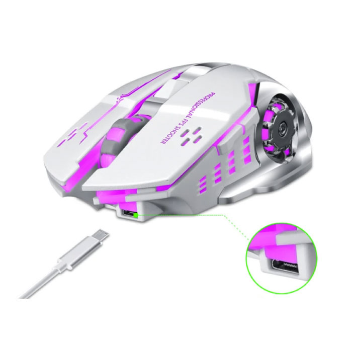Ratón inalámbrico para juegos Q-13 - Ratón ergonómico óptico RGB de 2,4 GHz con ajuste de DPI de hasta 2400 DPI - Blanco