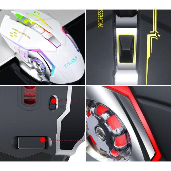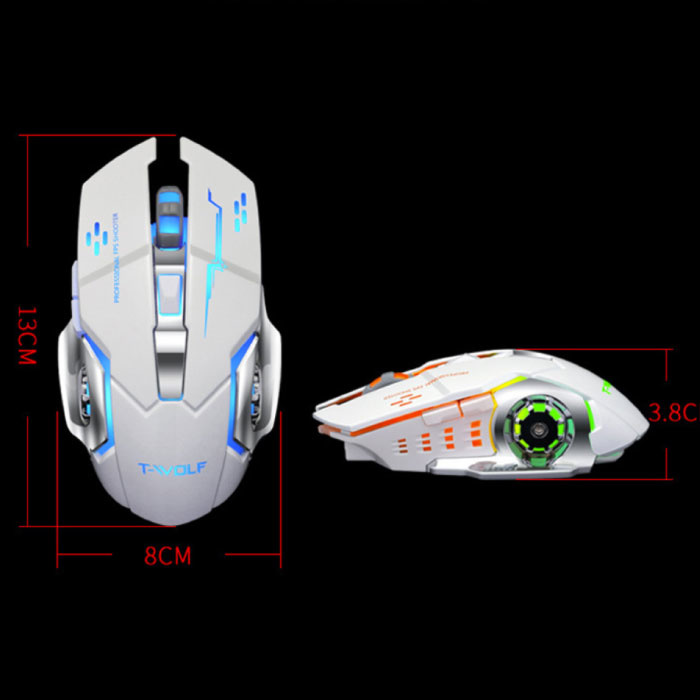 Con un ratón inalámbrico, te ahorras la molestia de los cables gracias al adaptador inalámbrico de 2,4 GHz. El ratón óptico se adapta cómodamente a la mano y cuenta con una hermosa iluminación RGB con un diseño altamente tecnológico para un impresionante efecto de ciencia ficción.
