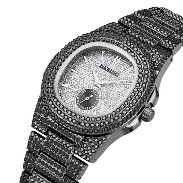 Este reloj de lujo de PINTIME está hecho de acero inoxidable y tiene un diseño "Full Diamond" con pequeños diamantes de imitación esparcidos por todo el reloj. Cada detalle del reloj se ha trabajado cuidadosamente para que el diseño se destaque.