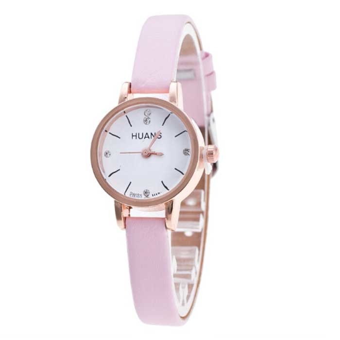 Feminidad, elegancia y minimalismo es lo que irradia el reloj Huans. El contraste entre las manecillas y la esfera crea una apariencia hermosa.