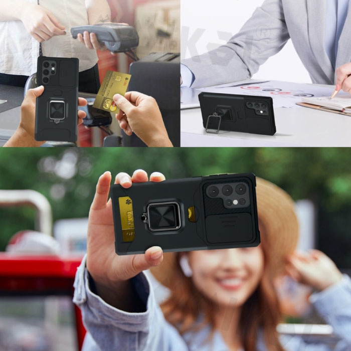 Con esta funda "heavy duty", la carcasa de tu teléfono estará siempre totalmente protegida contra caídas y contacto con objetos punzantes. Puede cubrir completamente la cámara , simplemente desliza el control deslizante frente a la lente y ciertamente no hay rasguños ni grietas. También hay espacio para una tarjeta de crédito en la ranura de la funda, la tarjeta de crédito se puede insertar y quitar fácilmente.