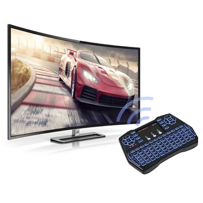 Además de los botones habituales, hay varias funciones adicionales. Hay un panel táctil que puede usar como mouse, botones multimedia e incluso dos gatillos que usa como clic izquierdo y derecho del mouse. Puede usar el control remoto hasta a 10 metros de distancia sin interferencias en la señal.