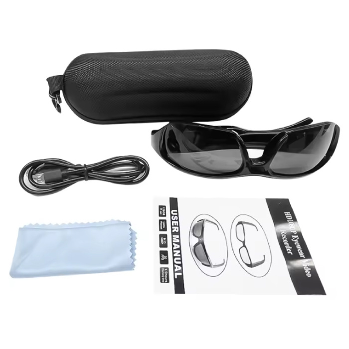 | El paquete incluye: | 1x Videocámara con gafas de sol 1 cable USB 1x paño de limpieza de vidrio 1x caja de almacenamiento 1 manual |
