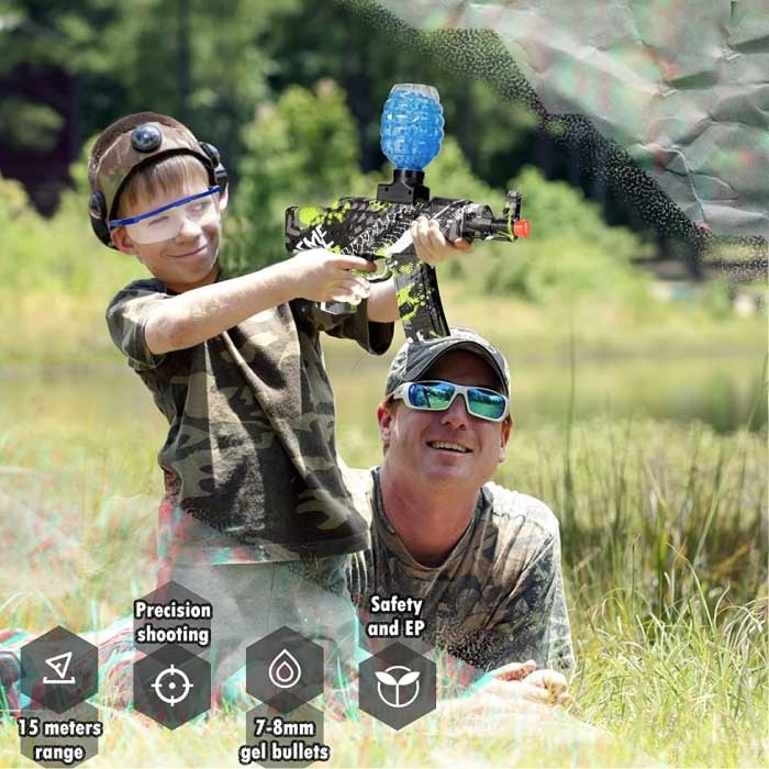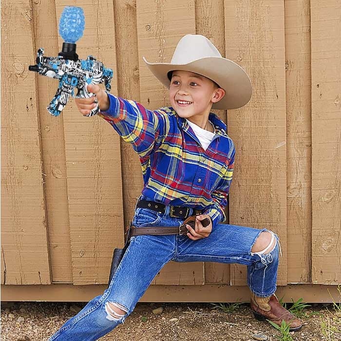 Le blaster à gel, au design amusant en forme d' AK47 , constitue une alternative fantastique aux billes de peinture ou aux pistolets Nerf. Il est économique et ne nécessite aucun nettoyage inutile. Les billes sont fabriquées à partir d'un gel sûr et non toxique qui n'abîme pas les vêtements.