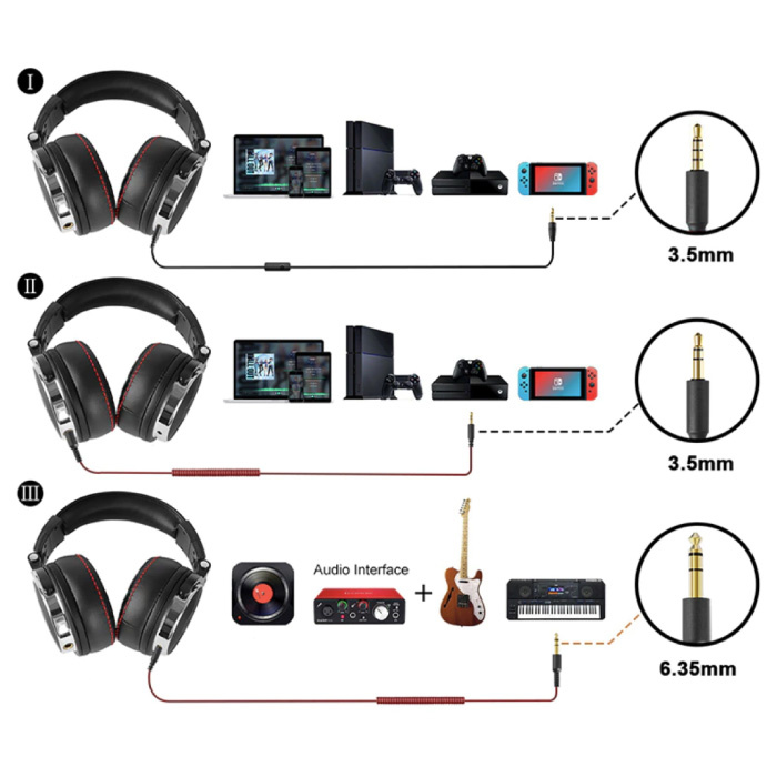 | Le paquet contient: | 1x casque OneOdio Studio 1x câble AUX de 6,3 mm à 3,5 mm 1 câble AUX de 3,5 mm à 3,5 mm 1x sac de rangement |