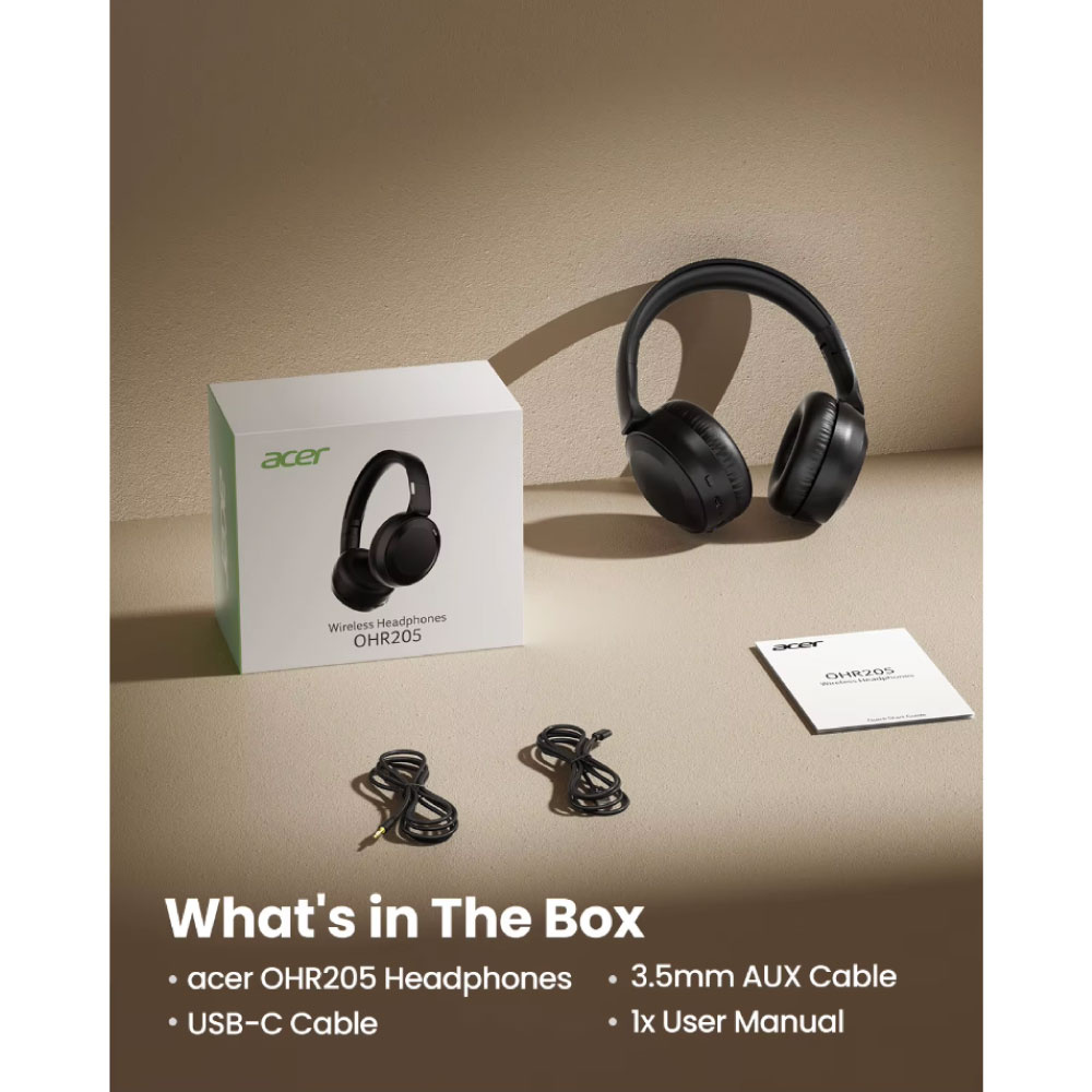 Vivez une expérience musicale inédite avec le casque sans fil Acer OHR205. Que vous soyez en déplacement, en train de vous détendre à la maison ou de travailler, ce casque allie un son puissant, un confort optimal et une autonomie impressionnante dans un format élégant.