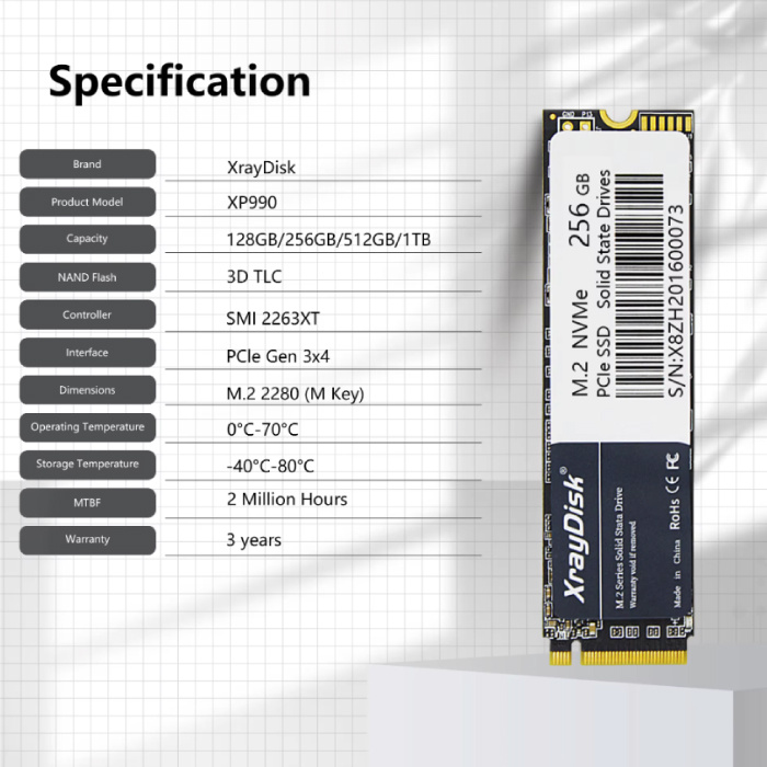 | Le forfait comprend : | 1x carte mémoire SSD interne XrayDisk M.2 |