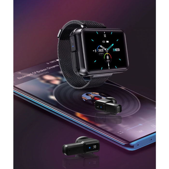 Le Lemfo T91 n'est pas seulement une montre intelligente, mais fonctionne également comme un boîtier de chargement et un espace de stockage pour les écouteurs sans fil inclus.