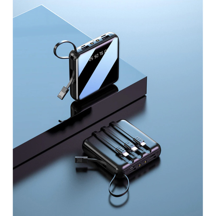 Mini banque d'alimentation universelle 10 000 mAh - Câble de charge 4 types - 2x USB LED Display Chargeur de batterie de secours Chargeur de batterie Noir
