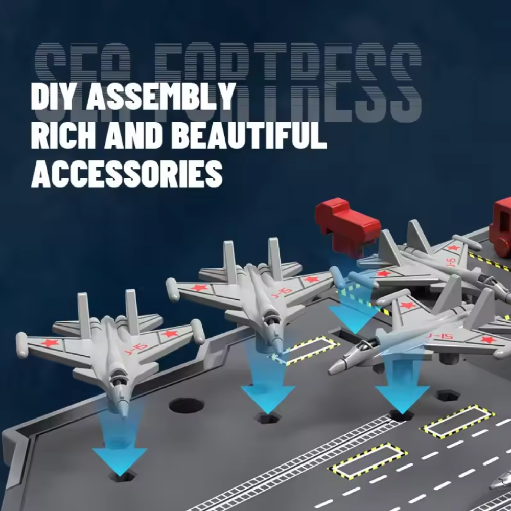 Le navire de guerre est livré avec un ensemble de mini-avions, de drapeaux et d'armes à assembler selon vos envies. Créez votre propre porte-avions et personnalisez-le !