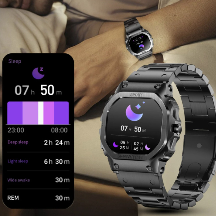 Avec la Lige Smartwatch, vous pouvez surveiller de près votre santé. Grâce à plusieurs moniteurs avancés, dont un moniteur de fréquence cardiaque, un oxymètre, un tensiomètre, un moniteur de sommeil et un moniteur de cycle menstruel, vous avez toujours un aperçu de votre bien-être.